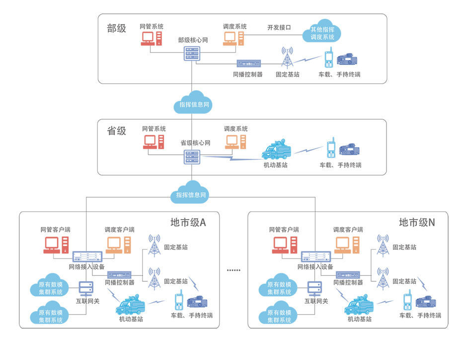 Acro®PDT数字集群通信系统是公司自主研发的、具有完全自主知识产权的PDT数字集群系统,符合中国专业数字集群PDT标准。 系统基于全IP网络架构,采用先进的NGN软交换技术及软件无线电技术,集调度指挥、电话互联、短信息、分组数据、系统互联功能为一体,可满足关键领域用户对高效、专业无线调度指挥业务的迫切需求,提供分级组网、模数平滑互联互通、应急部署、单基站、宽窄融合等多种解决方案。
